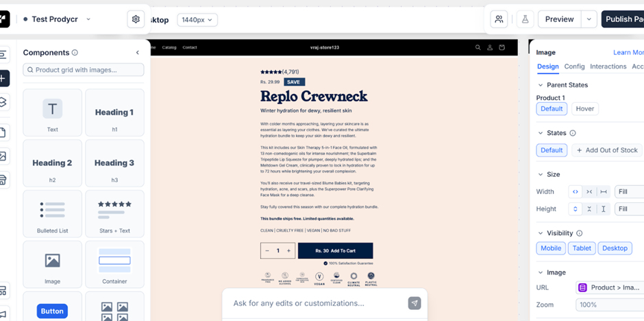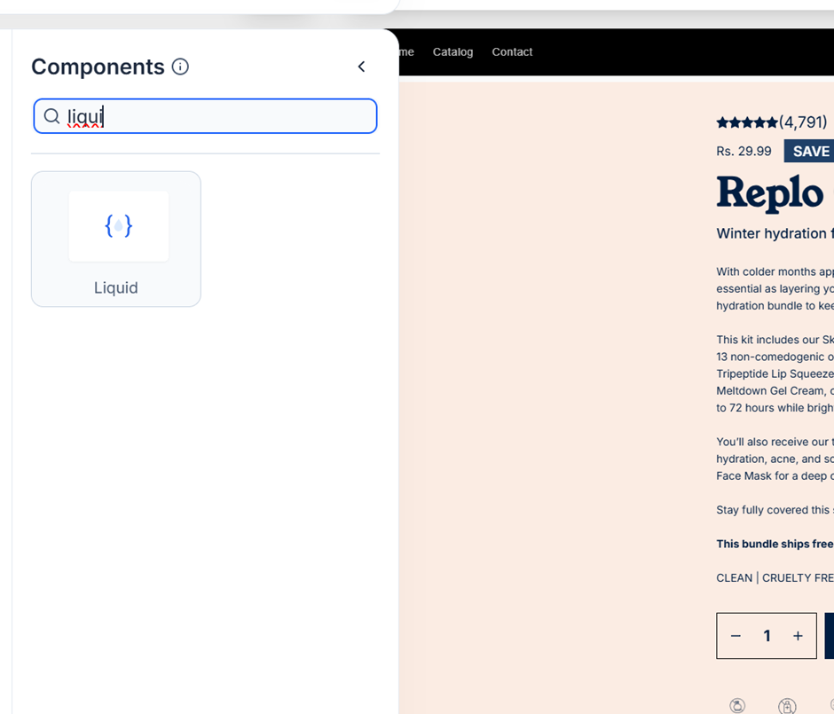 Return to Replo’s Liquid editor and paste the copied code snippet.