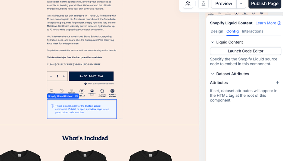 Drag and drop the Liquid component onto the section of the page where you want your bundle displayed.