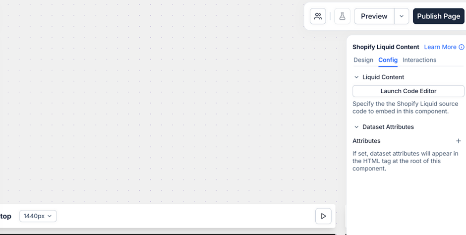 Click the Liquid component, then in the left panel under Config, select Launch Code Editor.